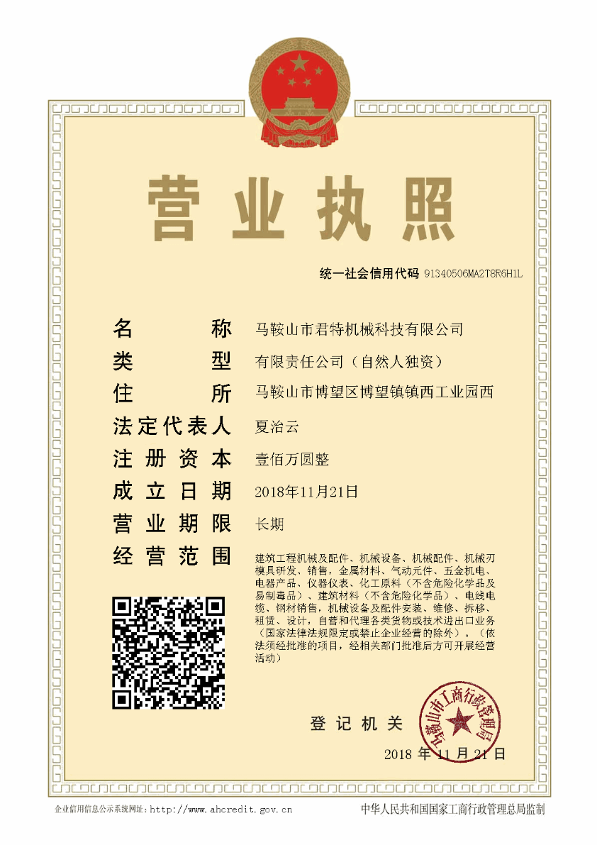 馬鞍山市君特機械科技有限公司位于蘇皖兩省交界地,距南京祿口機場23公里的博望經濟開發區內。其產品銷售遍布各地,公司以其先進的技術,優良的產品質量和周到的客戶服務...